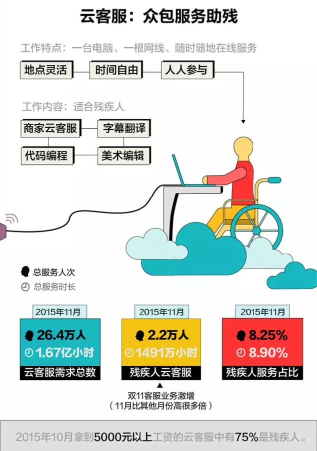 其實,還有很多像芳芳一樣的殘障群體,他們都想要從工作中獲得成就和價值。而互聯網+大數據平臺,幫助他們克服了現實生活中的不便,提供了更多平等的創就業機會。