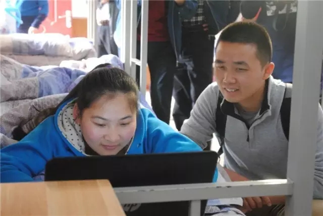 ▲阿里的小二們到寢室看望工作技能進步很快的“特云組”成員培培,為她鼓勁加油。培培因為意外事故胸椎以上癱瘓,躺在床上完成在線工作。