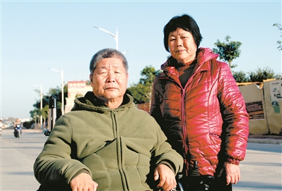 下午4時30分左右,陳小英跟著丈夫沙樞元徜徉在明媚的陽光下。不同的是,已經22年沒有出門的沙樞元,在殘疾人助力輪椅的幫助下,已經可以快速前進或拐彎;而照顧他23年的陳小英,由于大腿曾經骨折,只能蹣跚地跟在丈夫的背影后。
