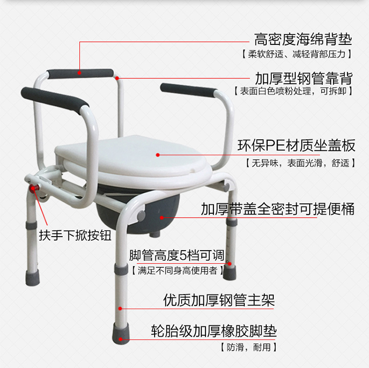 產品堅固結實,高度調節可適合老人小孩, 扶手可以調節,靠背可以拆卸。