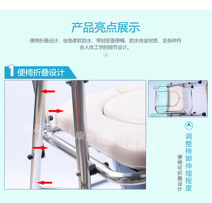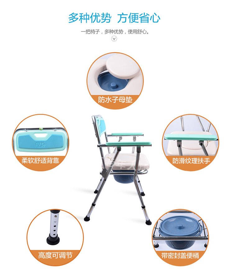 高檔可折疊,座墊可拆取,帶便桶,軟座墊,高度可調節,輕便實用。
