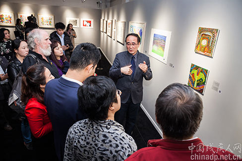 開幕式后,中國殘疾人雜志社副總編輯張和勇為來賓講解中方參展作品。