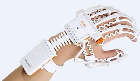 韓國一家名為Neofect的保健科技公司研究了一款用于中風患者手部功能恢復的智能手套,此款手套通過讓中風患者重復鍛煉生活中所使用的動作來恢復其手部功能。